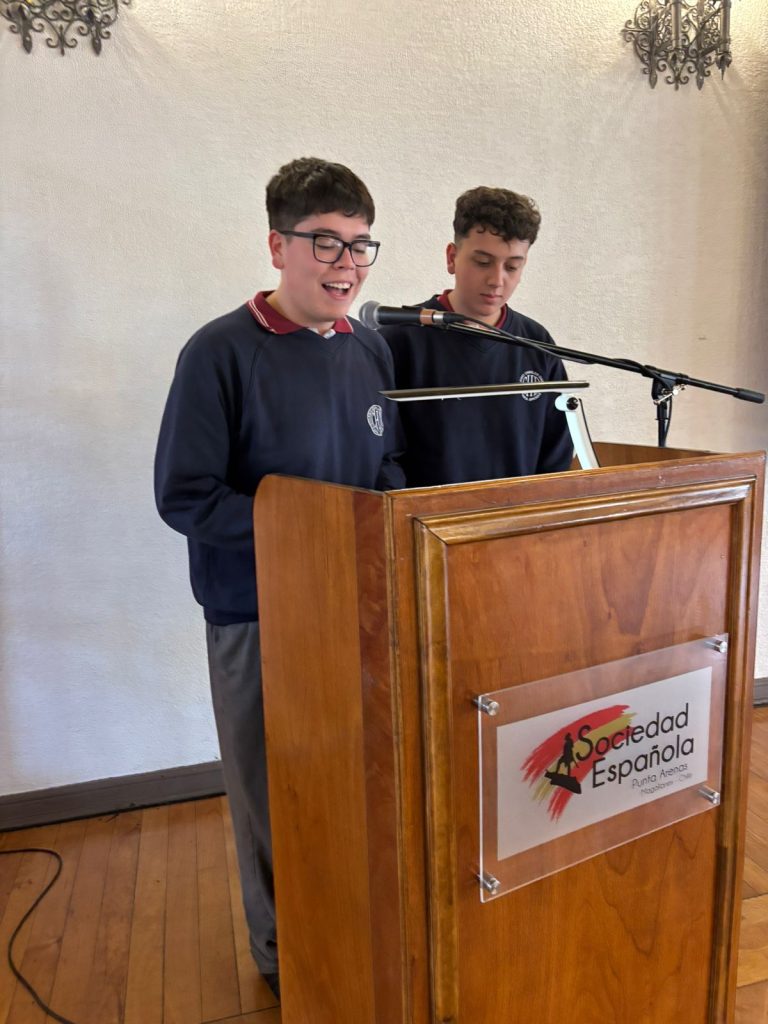 Nuestros estudiantes Oscar España y Marko Restovic participaron con gran entusiasmo en la Maratón de Lectura del “Don Quijote de la Mancha”, realizada en la emblemática Casa España